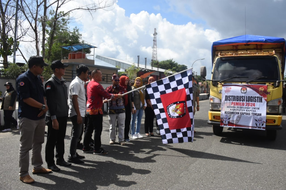 Penjabat (Pj) Bupati Kapuas Erlin Hardi yang diwakili oleh Sekretris Daerah Kabupaten Kapuas Septedy melakukan pelepasan distribusi logistik pemilu tahun 2024, bertempat di halaman Gedung Olahraga Panunjung Tarung Kuala Kapuas, Jumat (09/02/2024) pagi.