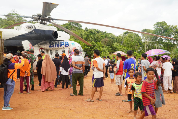 Bantuan paket sembako dibawa menggunakan helikopter milik BNPB dengan waktu tempuh 1 jam 40 menit dari Kota Palangka Raya. Pendistribusian dilakukan melalui jalur udara agar bantuan paket sembako tersebut tepat sasaran dan masyarakat terdampak banjir tidak kelaparan.