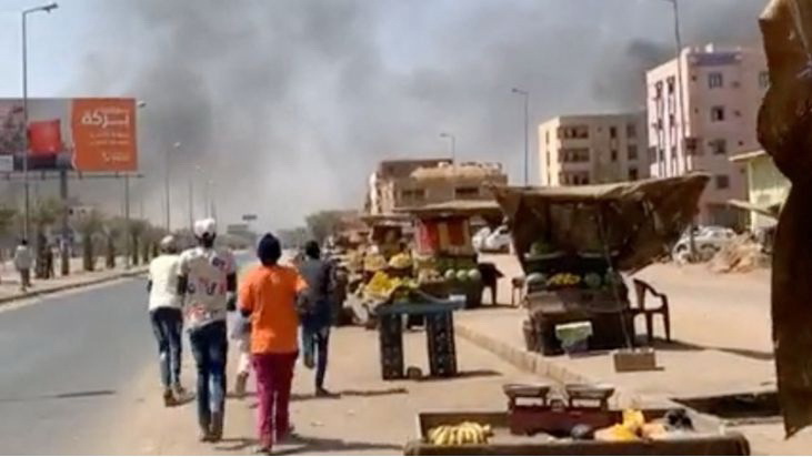 Warga setempat, Bakry (24) yang bekerja di bagian pemasaran, mengatakan penduduk Khartoum ‘belum pernah melihat yang seperti ini’. Asap hitam menyelimuti langit Sudan.